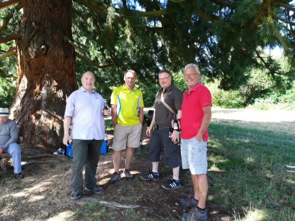 Unterwegs stoppte man im Schweinhag bei den riesigen Mammutbäumen. Dort erwartete uns Silke Schultheiß, die auch in diesem Jahr den Sommertreff organisierte.
