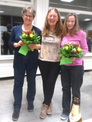 Sabine Maier je einen Blumenstrauß für deren sehr wertvolle Arbeit für alle Aktiven.